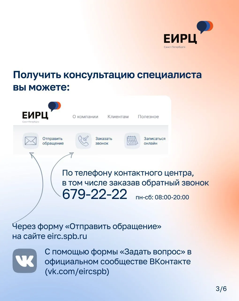️✅или очно, обратившись в любой Клиентский офис «ЕИРЦ СПб».