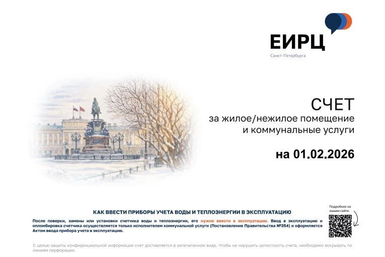 🔖Счет за январь (на 01.02.26 г.) доступен в Личном кабинете и мобильном приложении «ЕИРЦ СПб/ПСК»