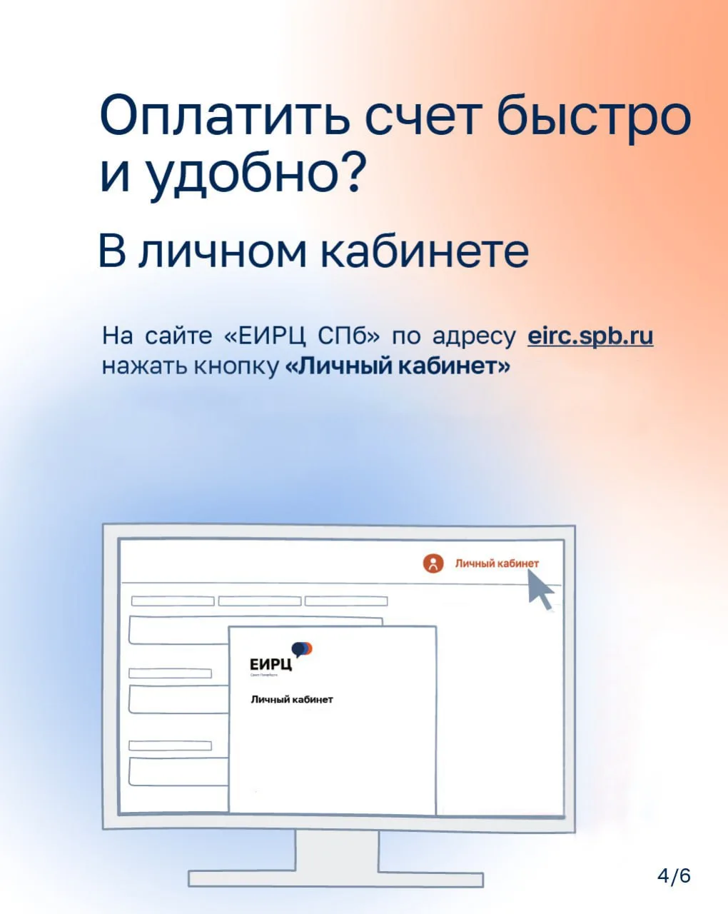 ✅В Личном кабинете: на сайте «ЕИРЦ СПб» по адресу eirc.spb.ru