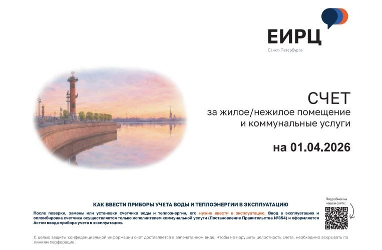 💬Счет за март (на 01.04.26 г.) уже доступен в Личном кабинете и мобильном приложении «ЕИРЦ СПб/ПСК»