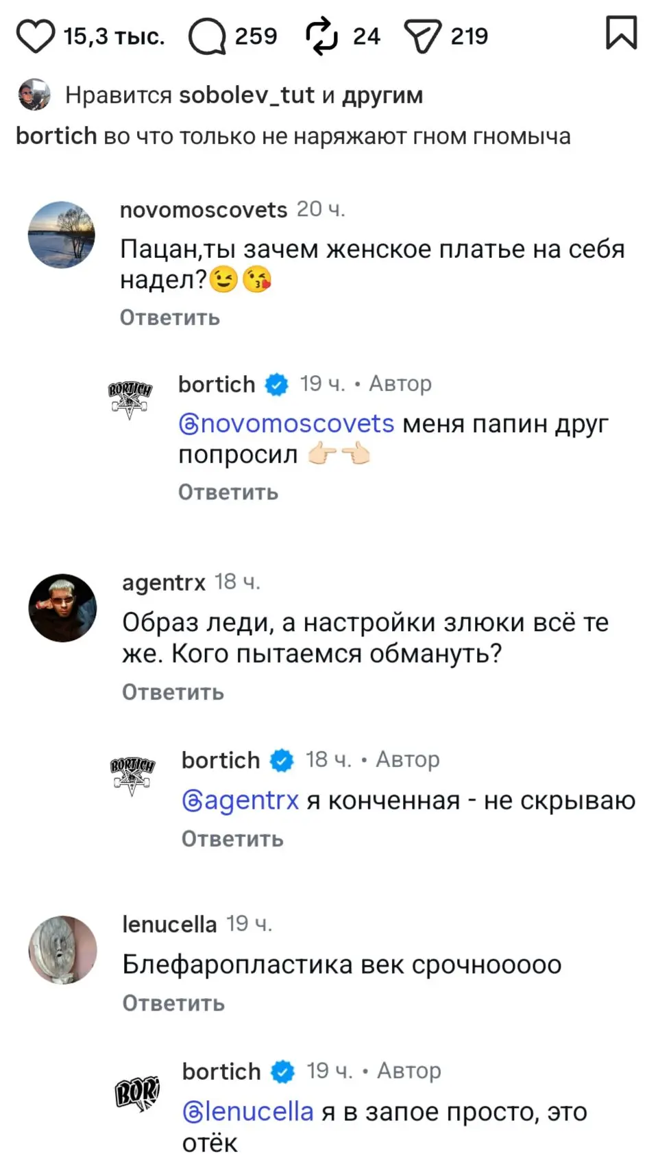 В комментариях, конечно, началось. Но Бортич не промолчала — ответила колко и с юмором 😂