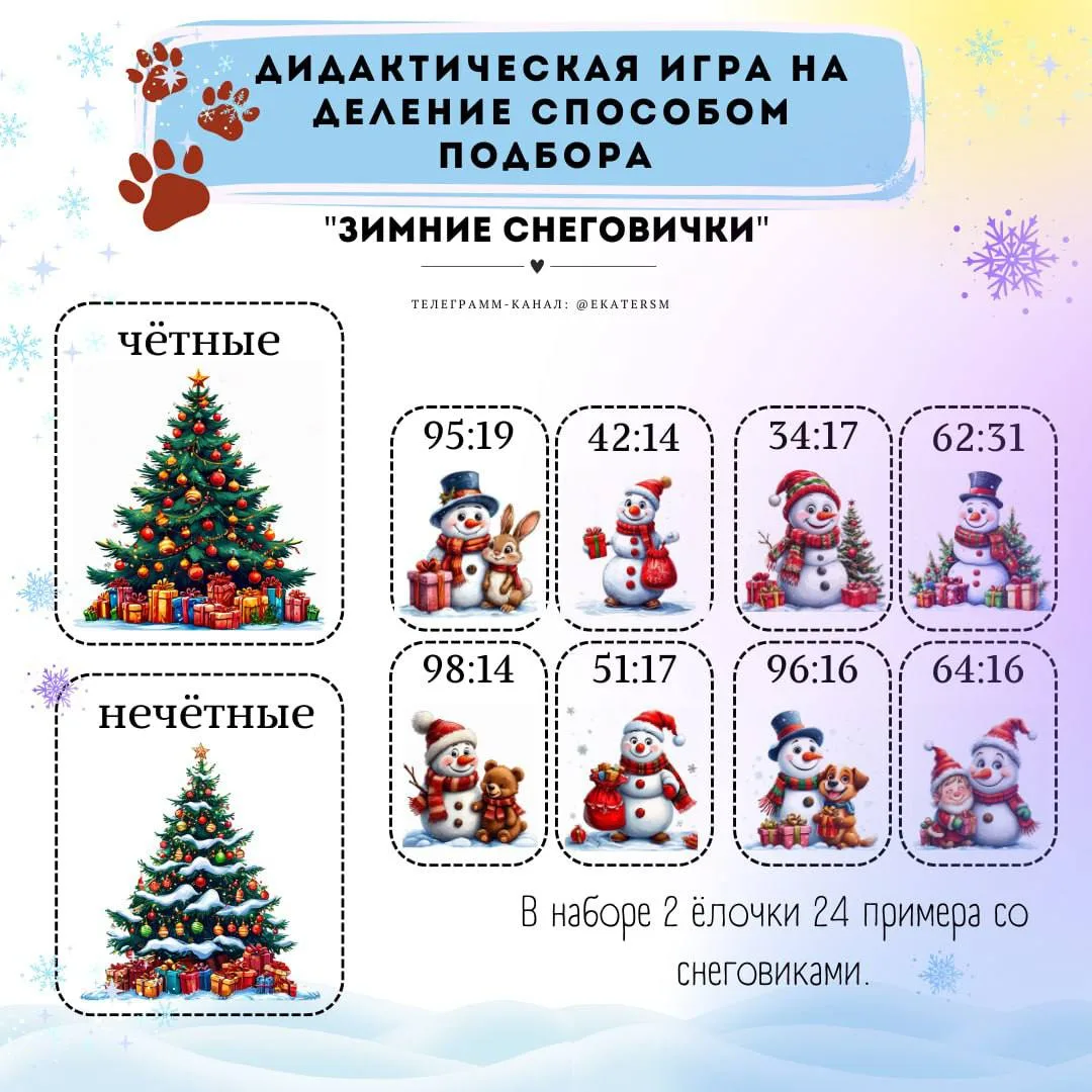 Дидактическая игра на деление способом подбора "Зимние снеговички" ☃️❄️