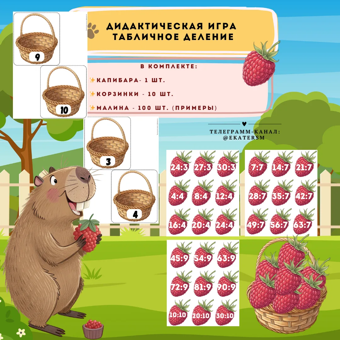 Дидактическая игра для печати «Табличное деление» - Капибары.🤩💕