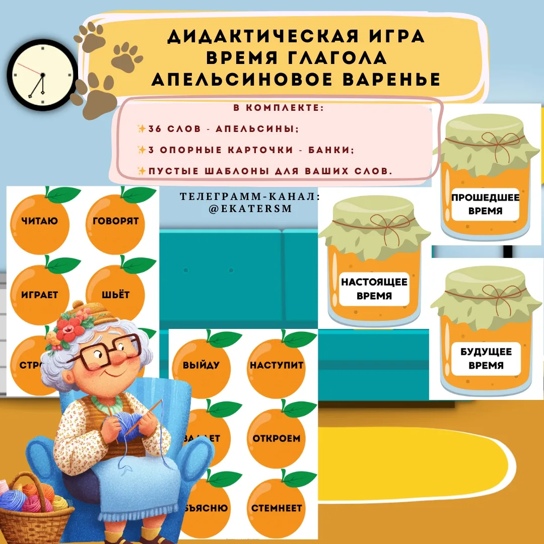 Дидактическая игра для печати «Время глагола» - Апельсиновое варенье.