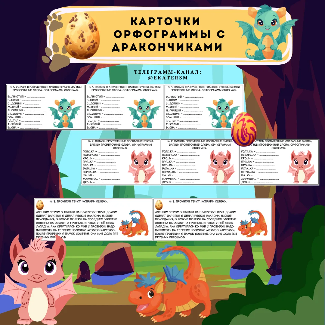 Карточки "Орфограммы с дракончиками" 😍