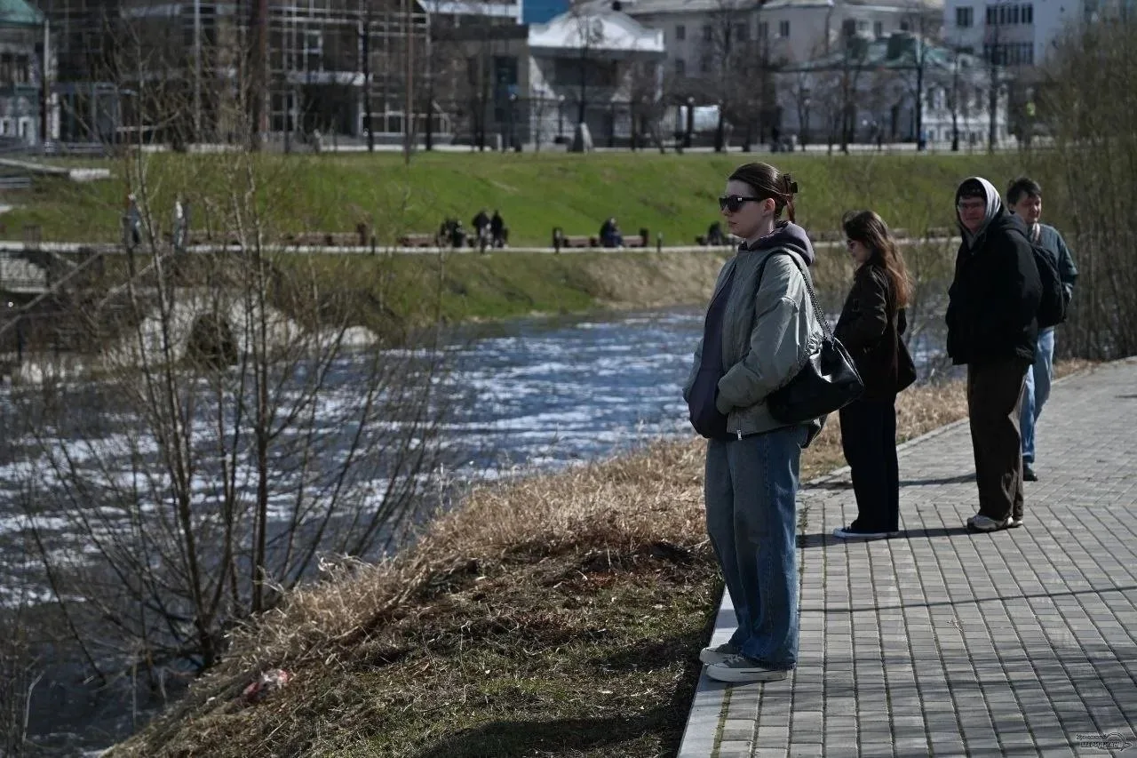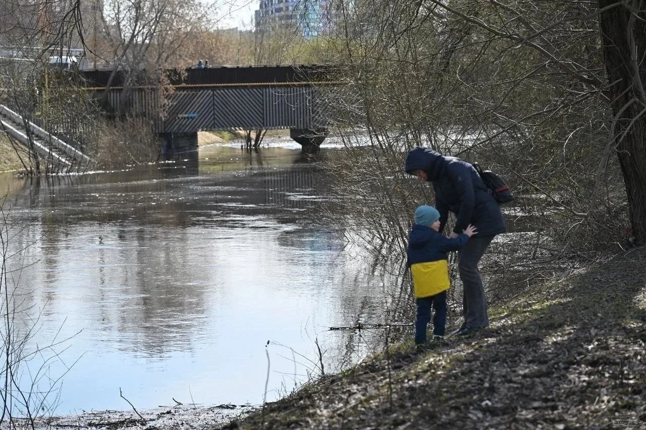 Обстановка из центра Екатеринбурга от нашего подписчика. Исеть вышла из берегов — под водой оказались тротуарные дорожки и лавочки.