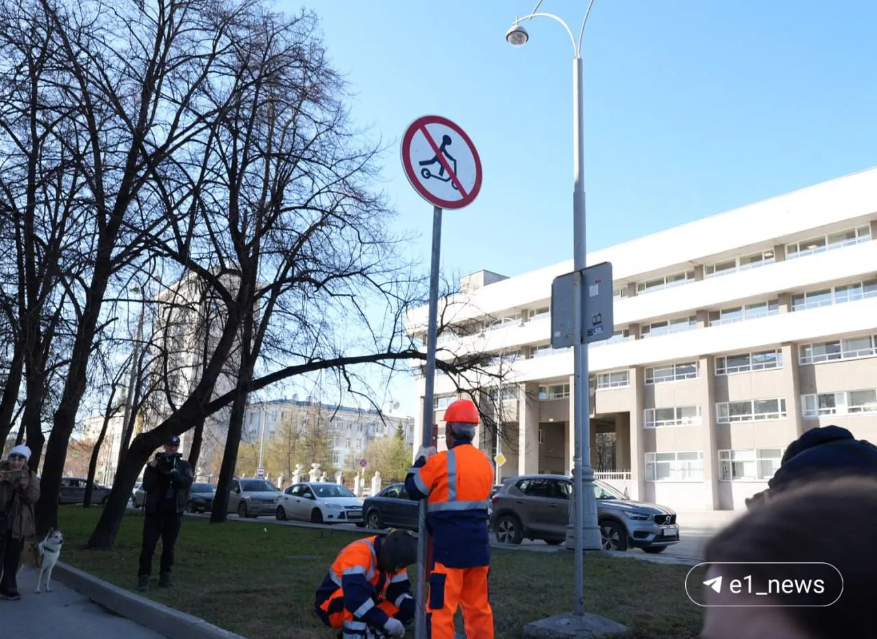 В Екатеринбурге начали устанавливать знаки, запрещающие ездить на самокатах.