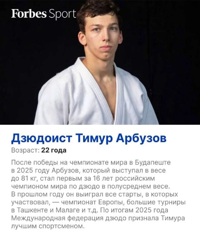Свердловский дзюдоист Тимур Арбузов попал в список Forbes «30 до 30».