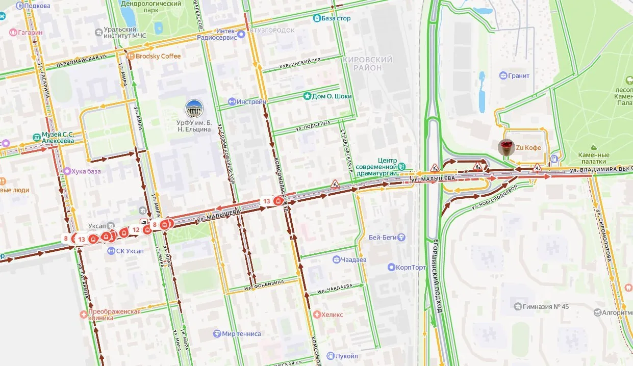 Екатеринбуржцы сегодня стоят в пробке на Малышева.