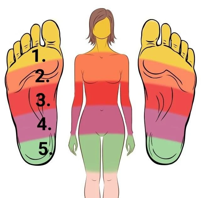 И правая, и левая стопа делятся на 5 зон, которые сформированы 4 линиями. Каждая область на ступне соответствует определенным зонам на теле и расположенным в них органам.
