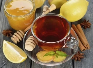 в горячую воду кладем дольку лимона и добавляем молотую корицу. Даем настояться и заодно немного остыть воде. Когда вода немного остыла добавляем ложку меда и выпиваем.