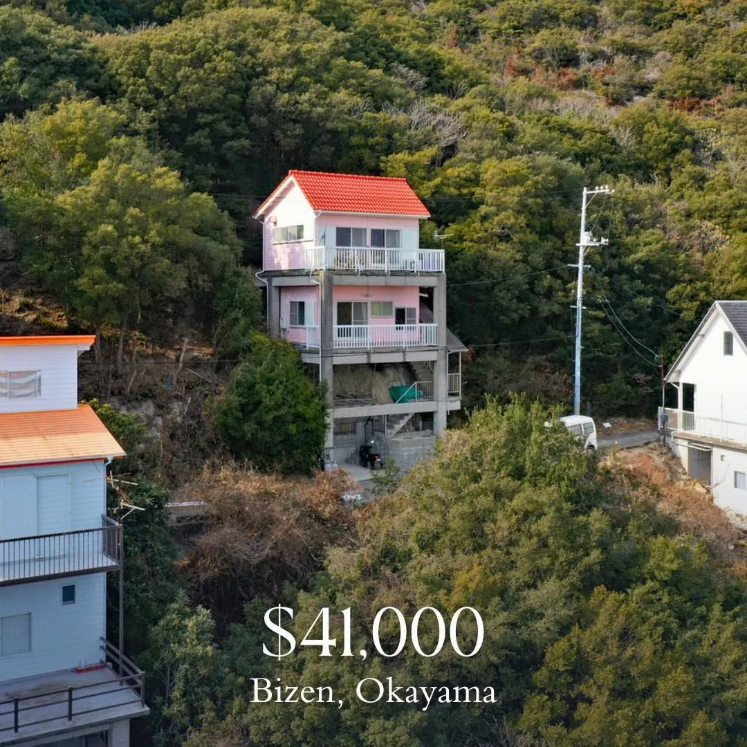 В Японии продают двухэтажный дом на горе с видом на океан всего за 3 млн рублей. Дом находится прямо у бухты в городе Бидзен — внутри несколько просторных комнат с высокими потолками и балконами, а на кухне можно каждый день ужинать под океанские закаты