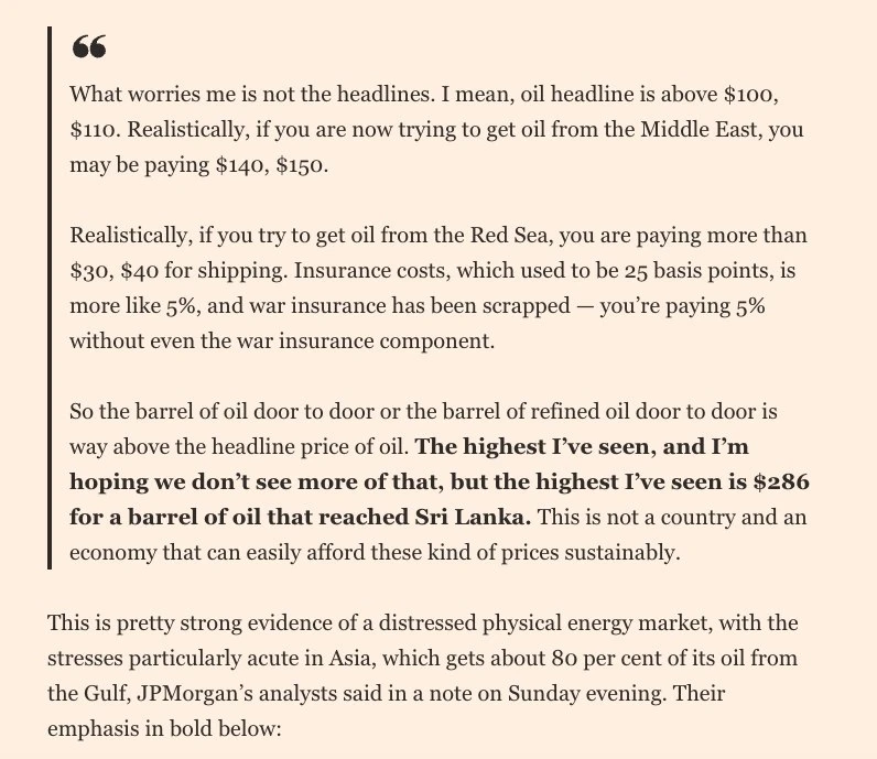 В Шри-Ланке баррель живой нефти был продан по рекордной цене – за 286 долларов, что в три раза выше фьючерсных цен