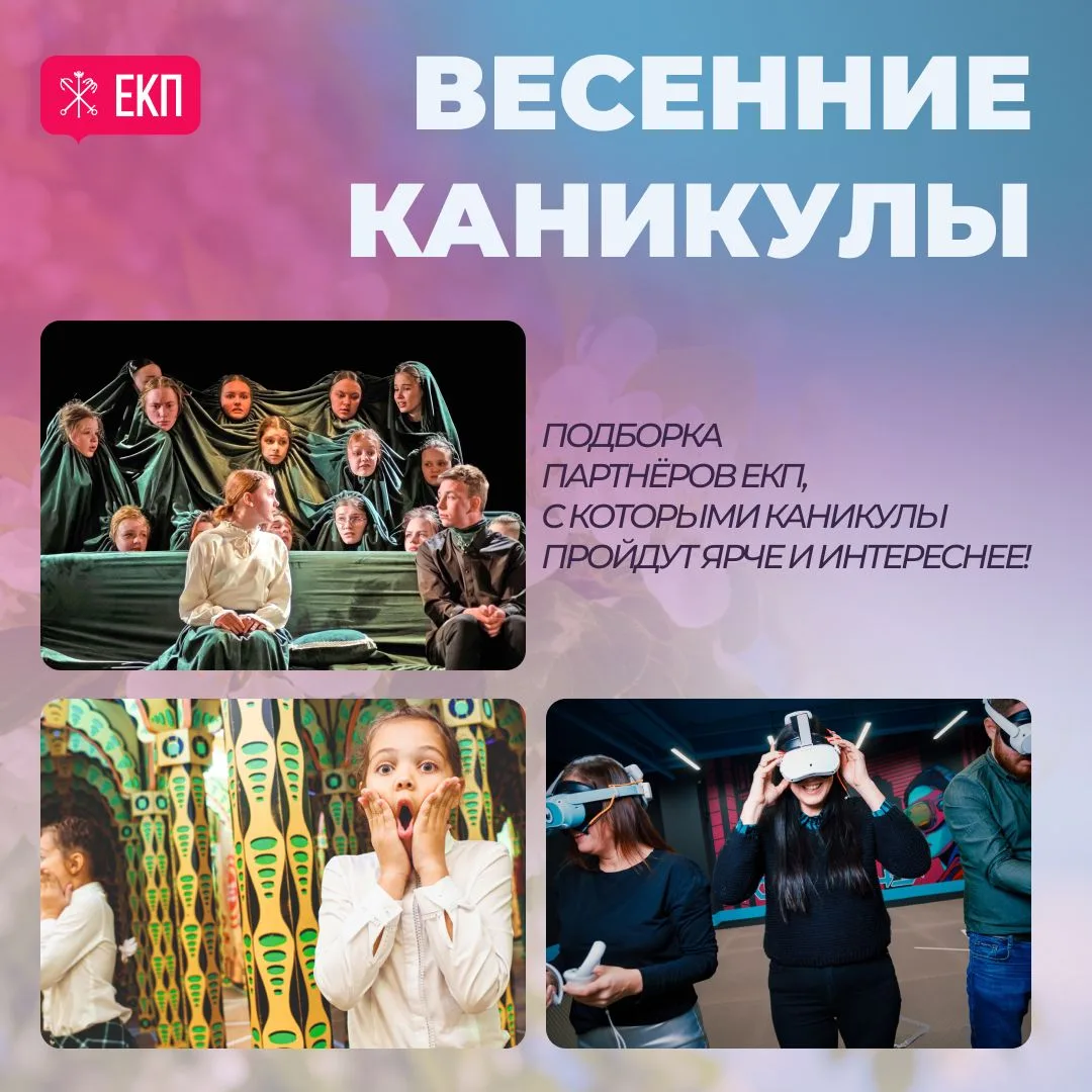 С 28 марта по 5 апреля школьников ждут весенние каникулы. Мы собрали для вас подборку партнёров ЕКП, среди которых развлекательные и образовательные центры, музеи и медицинские организации. Пусть отдых ваших детей будет веселым и познавательным, а для вас — выгодным!