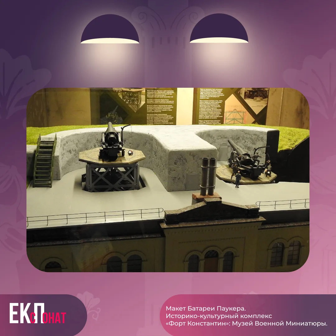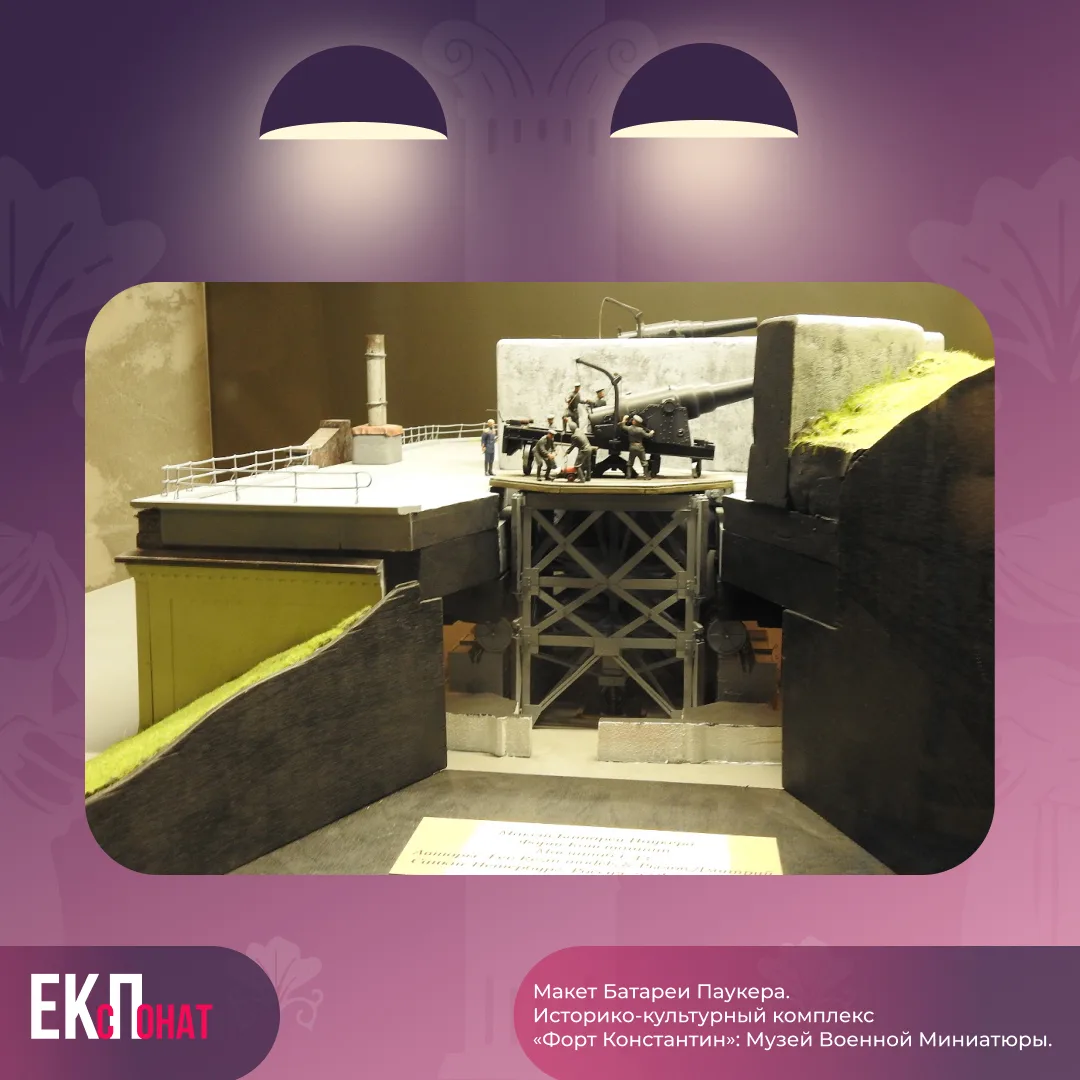 Макет батареи Паукера был создан в модельной мастерской музея сначала в 3D-модели, раскрашен и собран вручную вместе с подъемным механизмом. По оригинальным чертежам были воссозданы фасад батареи, орудия и механизмы. Макет украшают миниатюры солдат в исторической униформе конца XIX века.