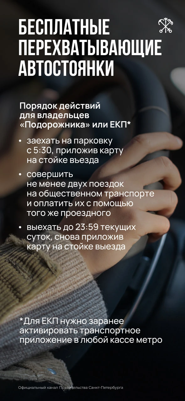 При условии, что после парковки автомобиля на перехватывающей автостоянке, вы совершили не менее двух поездок на общественном транспорте, оплатив их с помощью электронного проездного билета, записанного на ЕКП.