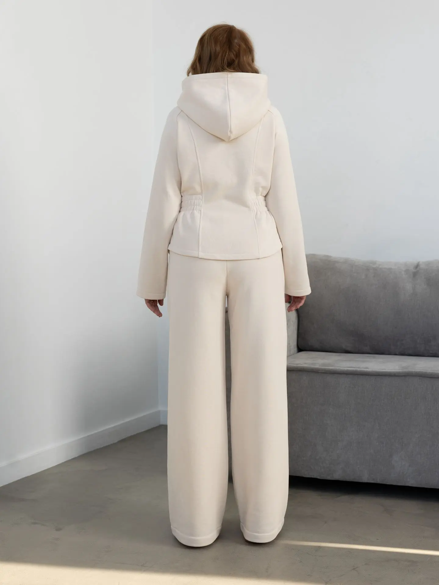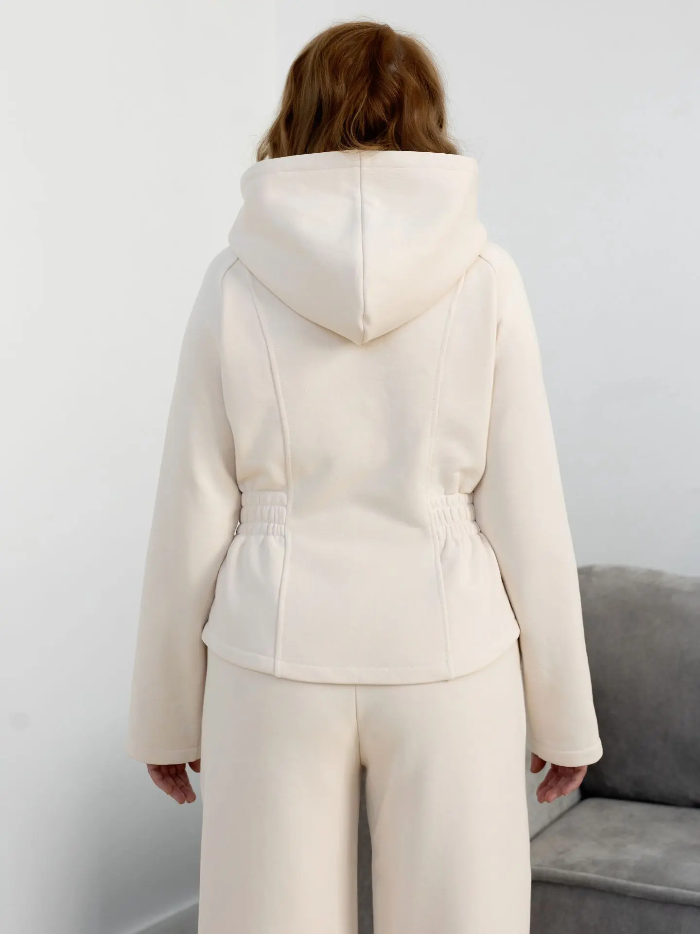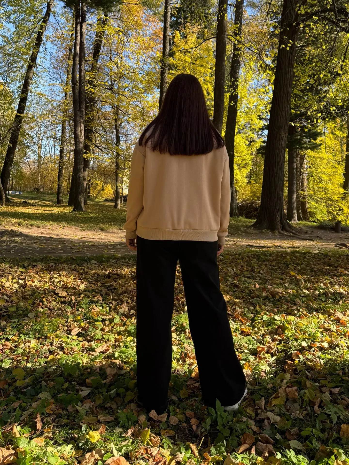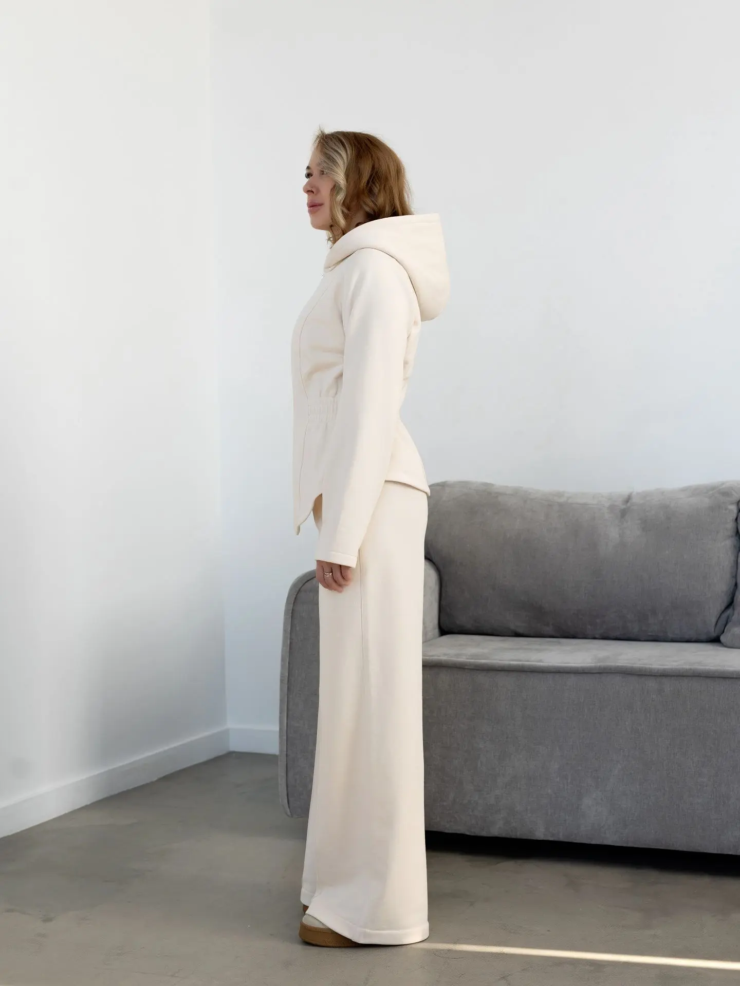 Толстовка и брюки 44 размера рост 170 см, реальный размер (на момент фотосессии) по обхвату груди 44 рост 167 см. Параметры тела: ОГ 87 см, ОТ 72 см, ОБ 96 см. Размер выбран 44 по обхват груди. Сшита из футера трехнитки диагональ, плотность: 320 гр/м2, состав: 85% хлопок, 15%пэ. Трикотаж (цвет кокос) и молния из магазина https://vk.com/club219182622