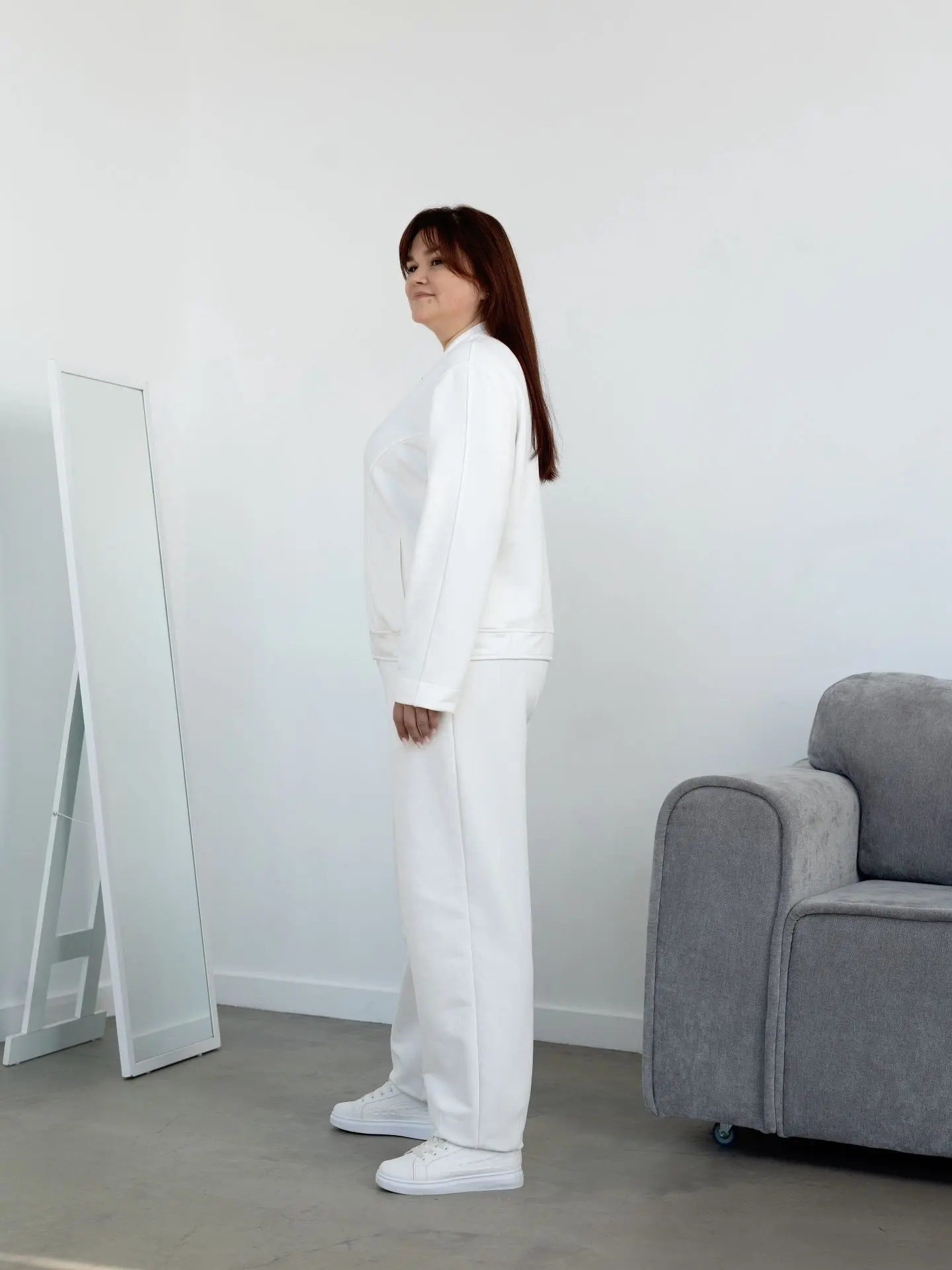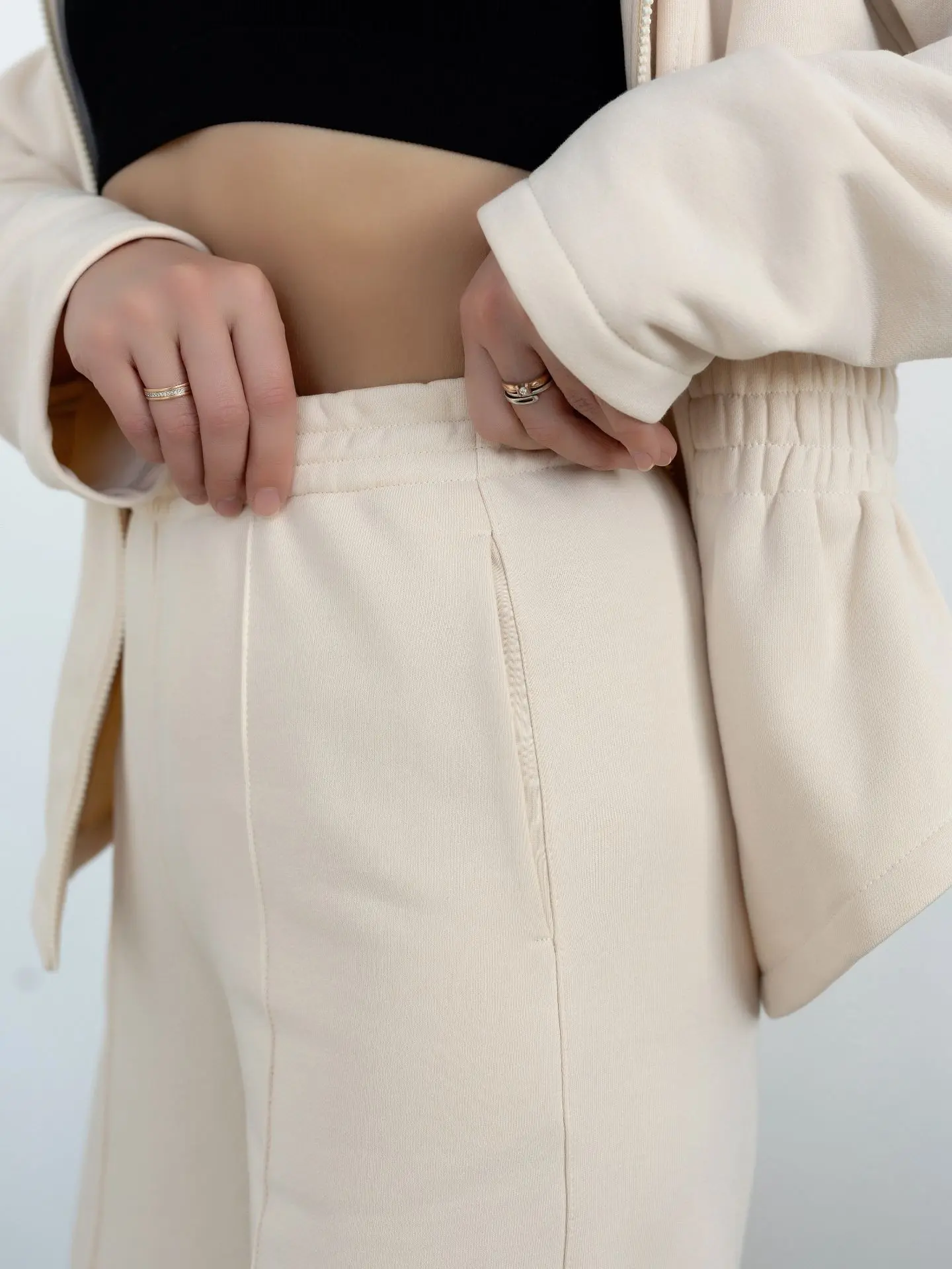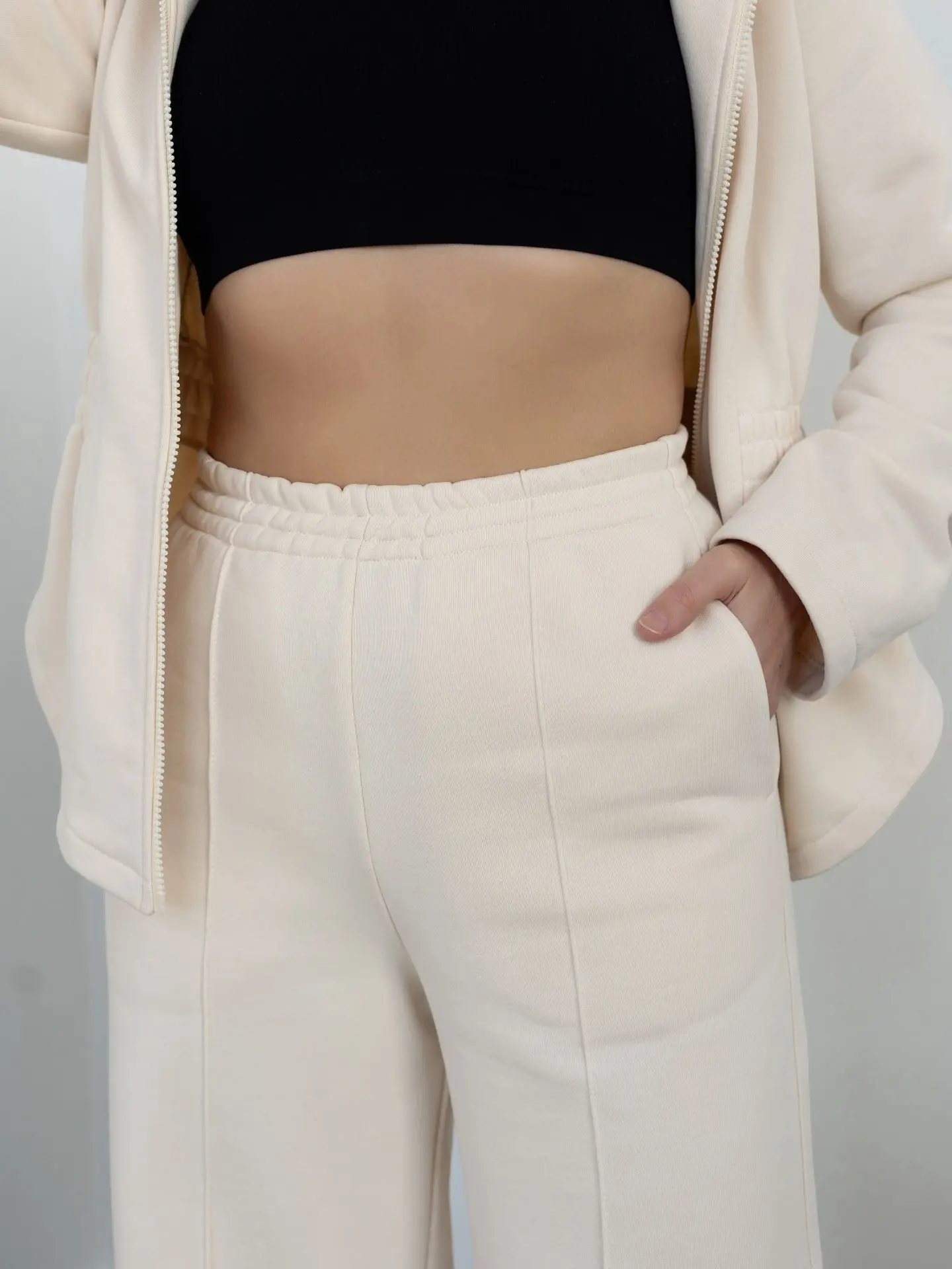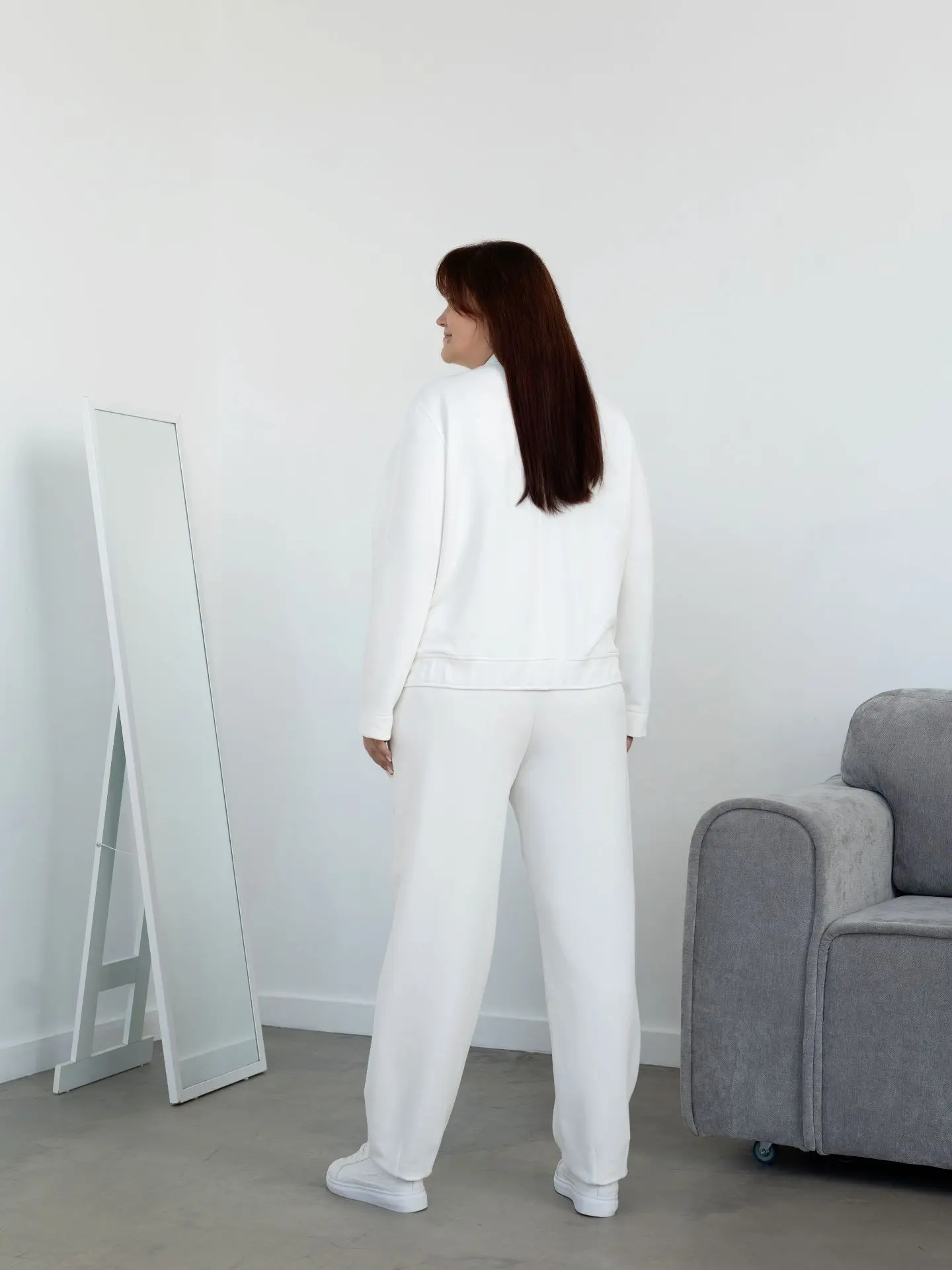 Толстовка и брюки 44 размера рост 170 см, реальный размер (на момент фотосессии) по обхвату груди 44 рост 167 см. Параметры тела: ОГ 87 см, ОТ 72 см, ОБ 96 см. Размер выбран 44 по обхват груди. Сшита из футера трехнитки диагональ, плотность: 320 гр/м2, состав: 85% хлопок, 15%пэ. Трикотаж (цвет кокос) и молния из магазина https://vk.com/club219182622