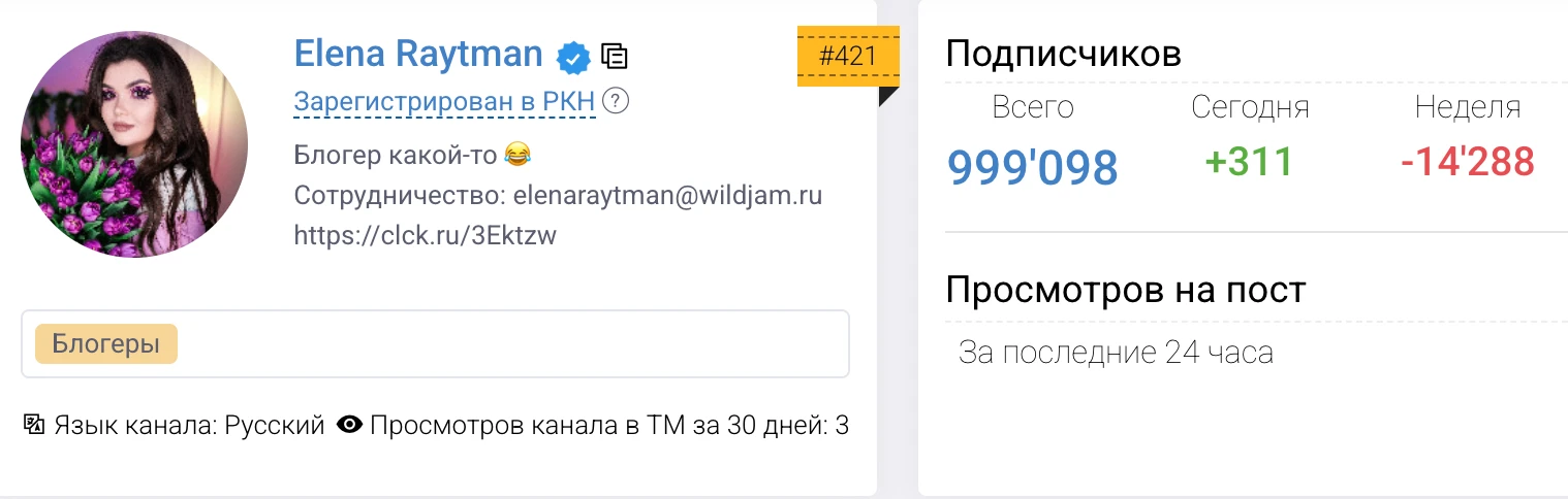 У Лены в Telegram канале упало число подписчиков, ранее было более миллиона человек🥺