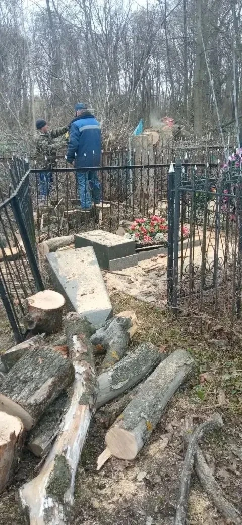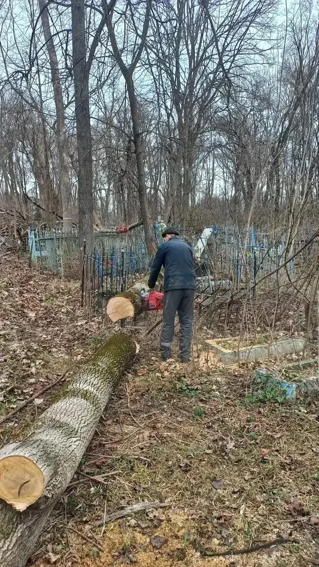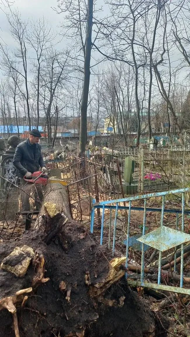 Сотрудники МУП «Елец‑Сервис» продолжают работы по уборке деревьев на старом кладбище, поваленных ветром