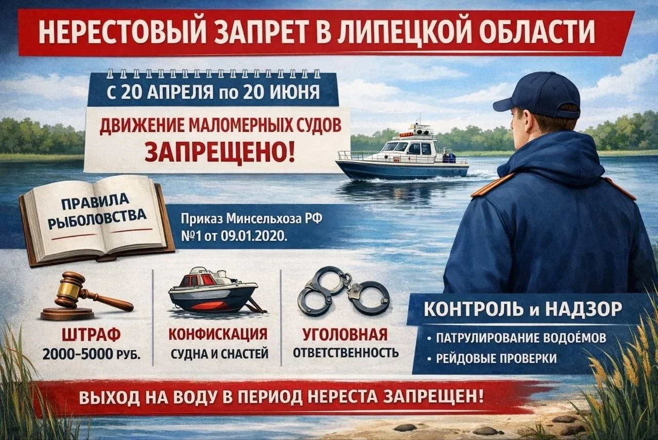 В период с 20 апреля по 20 июня на водных объектах Липецкой области вводится запрет на движение маломерных судов. Данные меры направлены на сохранение водных биологических ресурсов.