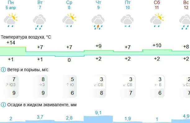 Сегодня в Ельце ожидается +11°..+13°, пасмурно, без осадков. Ночью +4°..+6°. Ветер северо-западный 3 м/с. Давление 741 мм рт.ст. Завтра +12°..+14°, переменная облачность, без осадков. Ветер западный 3 м/с. Давление 743 мм рт.ст.