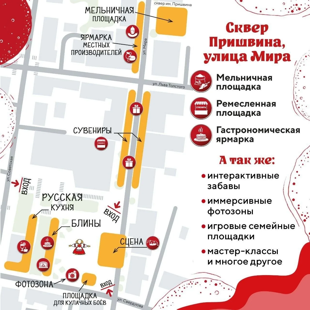21 и 22 февраля площадь Ленина и улица Мира! В программе масленичные забавы, конкурсы, выступления, кулачные бои и огромное количество блинов на любой вкус!