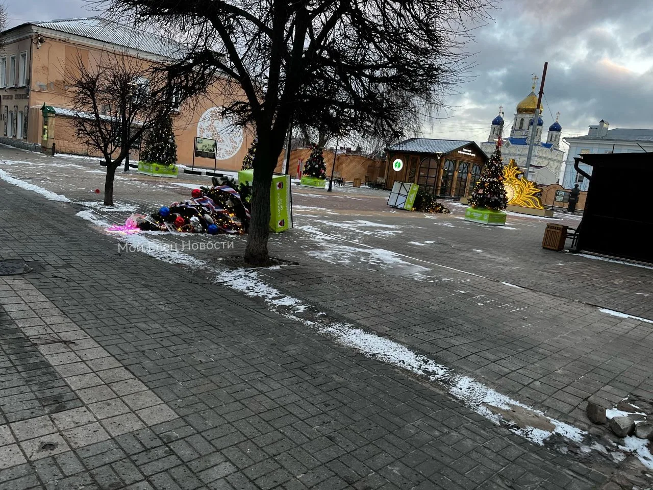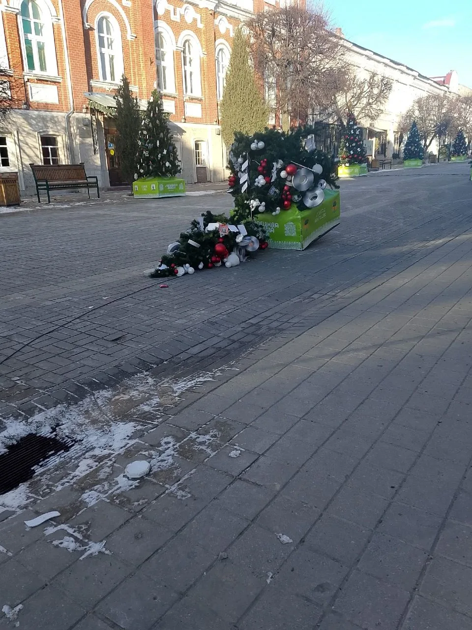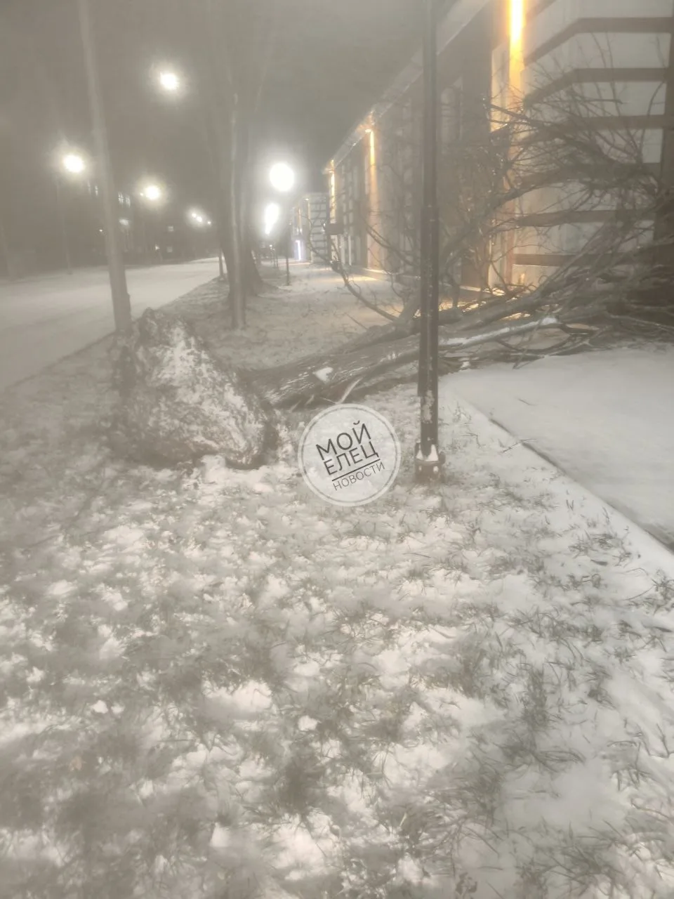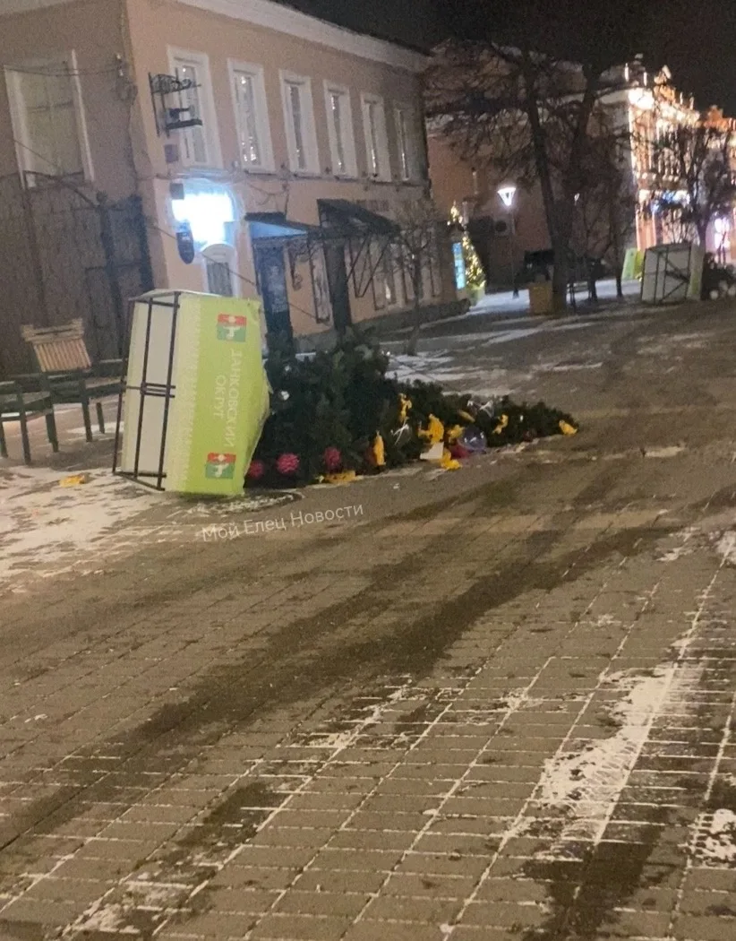 ‼️⚡Ночью на Елец обрушился штормовой ветер. К сожалению, от стихии пострадали и ёлочки на Торговой🎄😥
