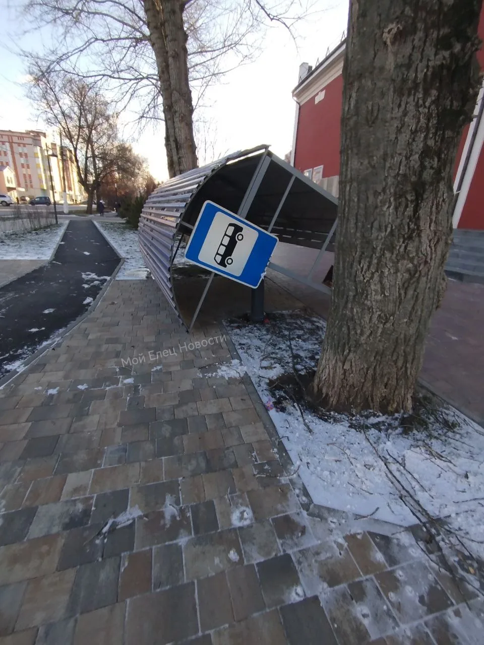 ‼️Сильный ветер в Ельце снёс не только новогодние ёлки на Торговой, но и несколько остановок в городе.