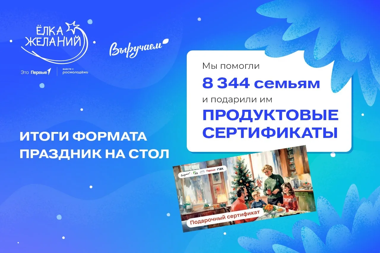 Мы разослали вторую волну продуктовых сертификатов – и теперь можем подвести общий итог. Благодаря поддержке неравнодушных людей мы смогли помочь 8 344 семьям по всей стране! Это тысячи накрытых праздничных столов, детские улыбки и моменты, которые надолго останутся в памяти.