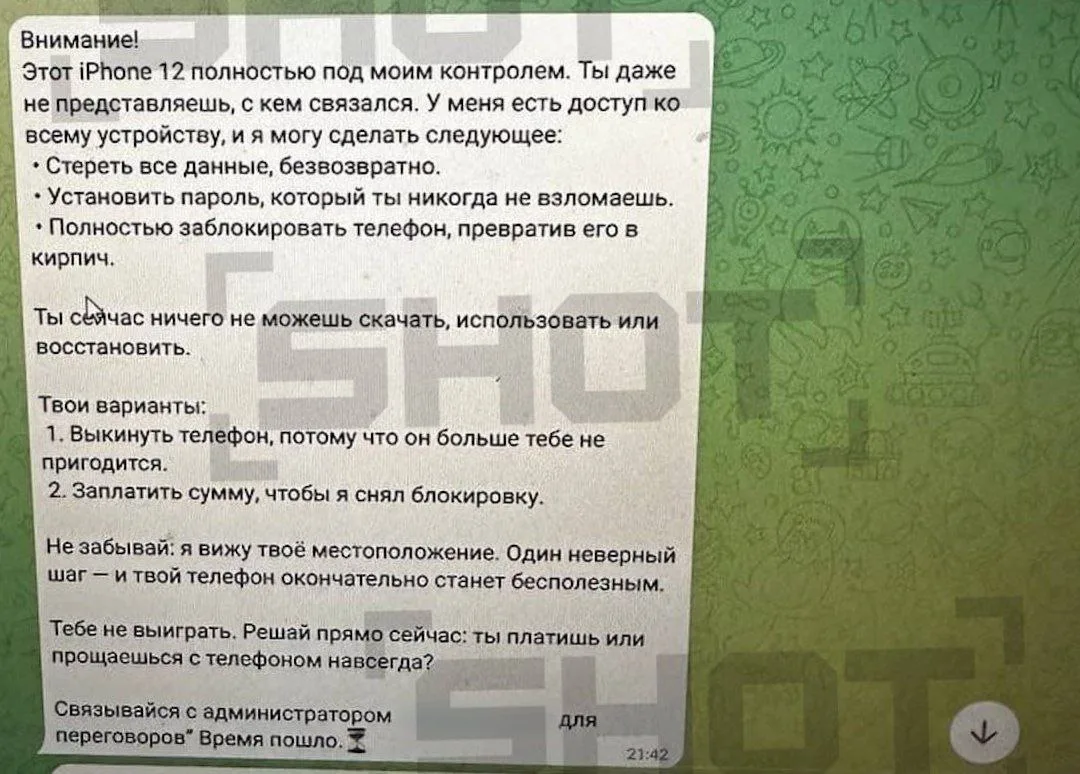 Телефоны блокируются, а мошенники требуют 50 000 рублей и больше за разблокировку.