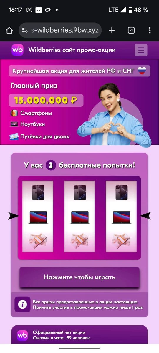 — Любые «подарки» за переход по ссылке — это почти всегда мошенничество.