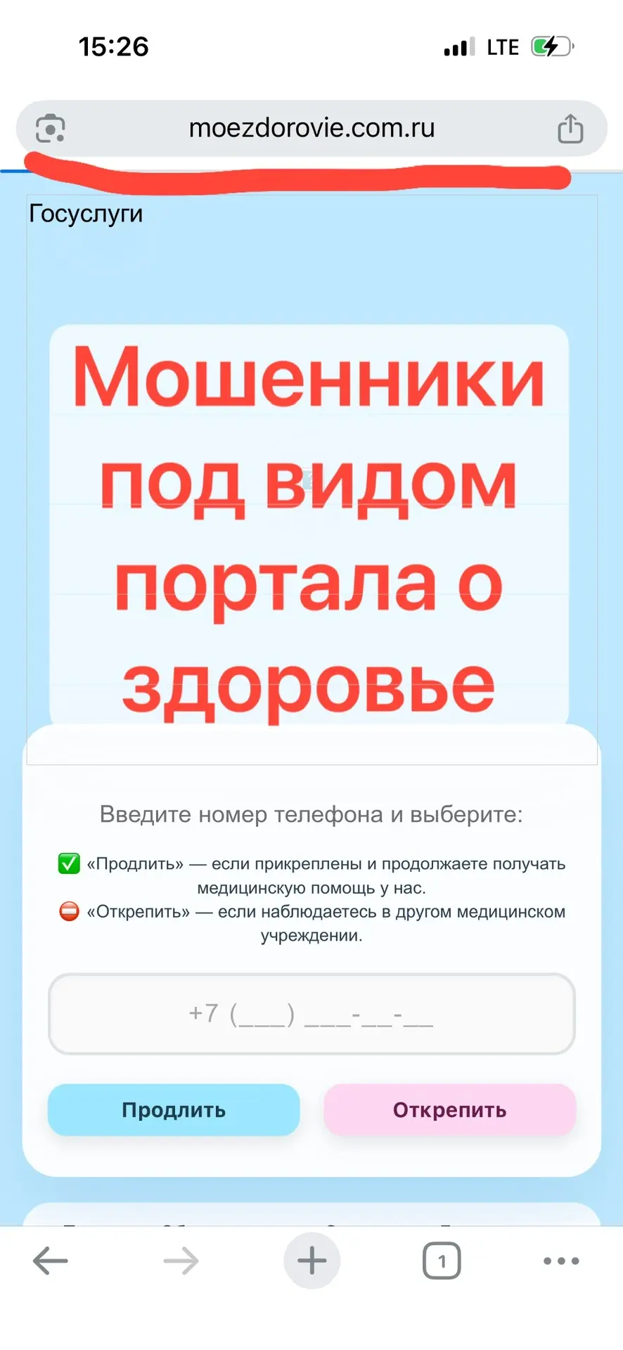 но ссылка ведёт на поддельный сайт, почти неотличимый от настоящего.