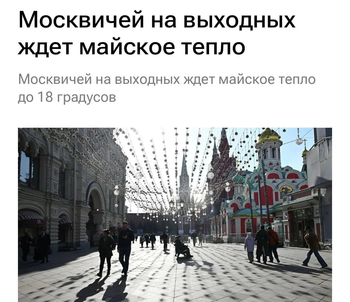В Москву придёт жара до +18°C — синоптики пообещали майское тепло уже к концу этой недели.