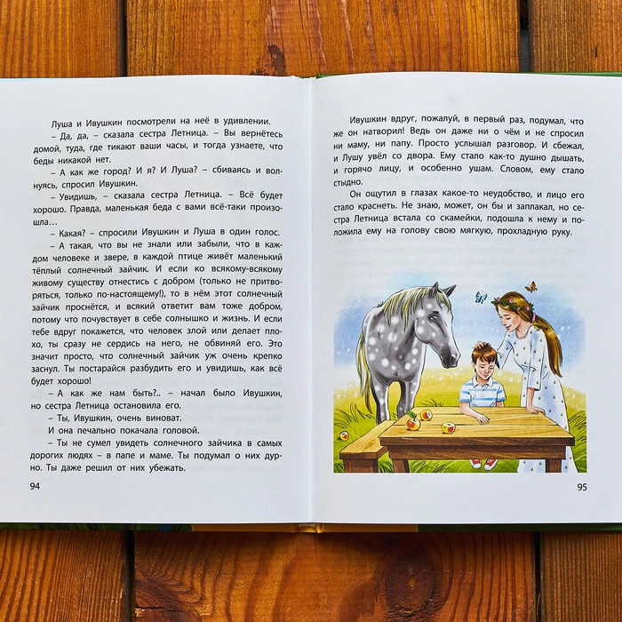 Сказочная повесть известной детской писательницы и поэтессы Ирины Токмаковой для детей младшего школьного возраста от 6-7 лет и старше. Историю о путешествии семилетнего мальчика Филиппа Ивушкина и его подруги лошади Луши в сказочную страну многие помнят с детства. Это трогательная история о любви, доброте и ответственности. О том, что в каждом живом существе есть «маленький теплый солнечный зайчик», которого нужно разбудить добрыми словами и делами, нежностью и искренностью.