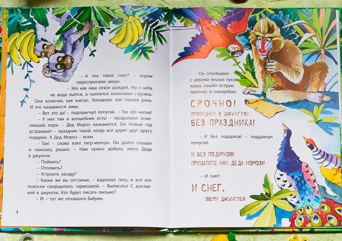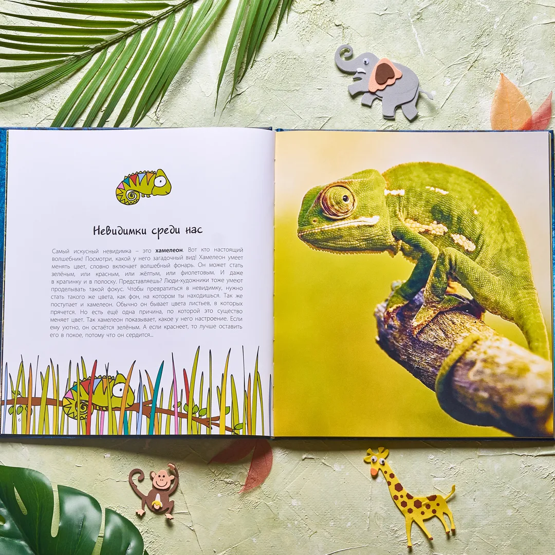 - цветные фотографии и веселые рисунки на всех разворотах;