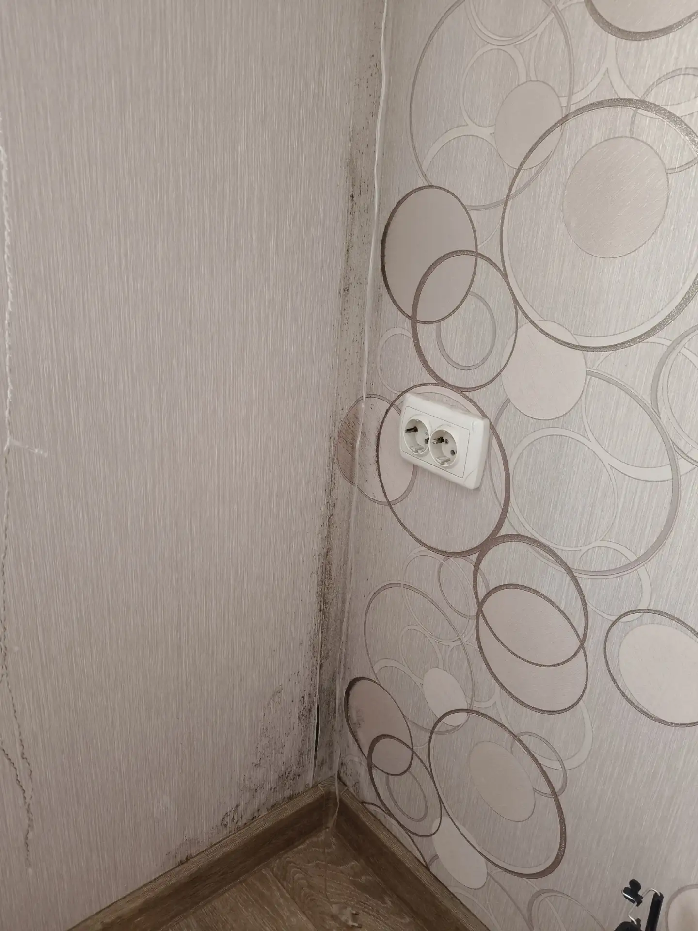 Угол в комнате весь влажный, чёрная плесень, сам угол очень холодный и тянет сквозняк.