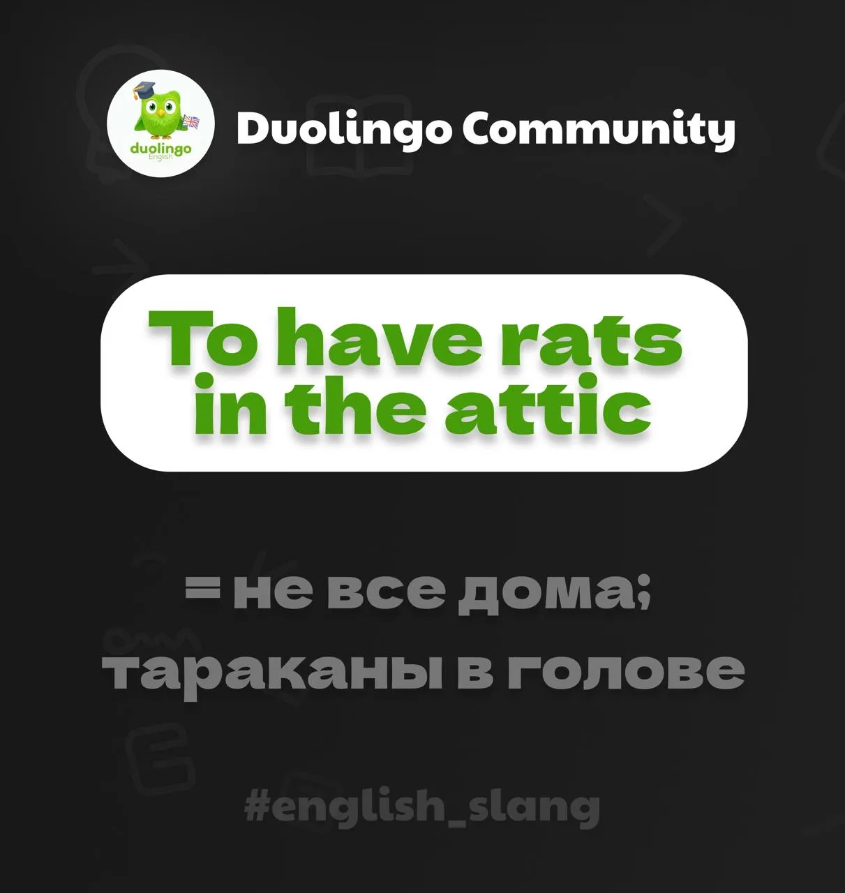 ➡️ Есть в английском шикарное выражение to have rats in the attic. Так говорят про человека, у которого что-то с головой: странные привычки, нелогичное поведение, внезапные заскоки — всё туда.