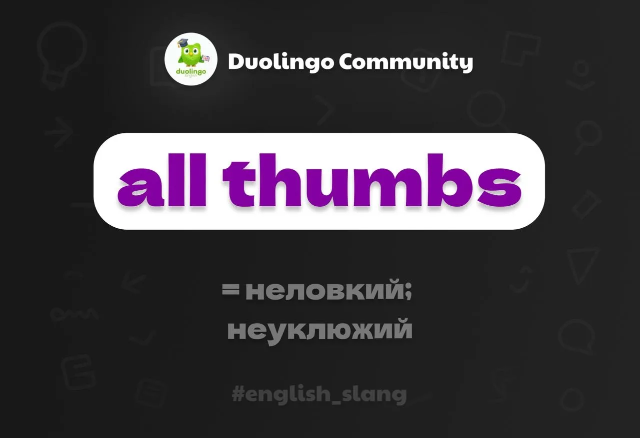 ➡️ Фраза To be all thumbs описывает момент, когда моторика сказала «пока» и всё начинает выпадать из рук. Обычно — по глупости или от волнения.