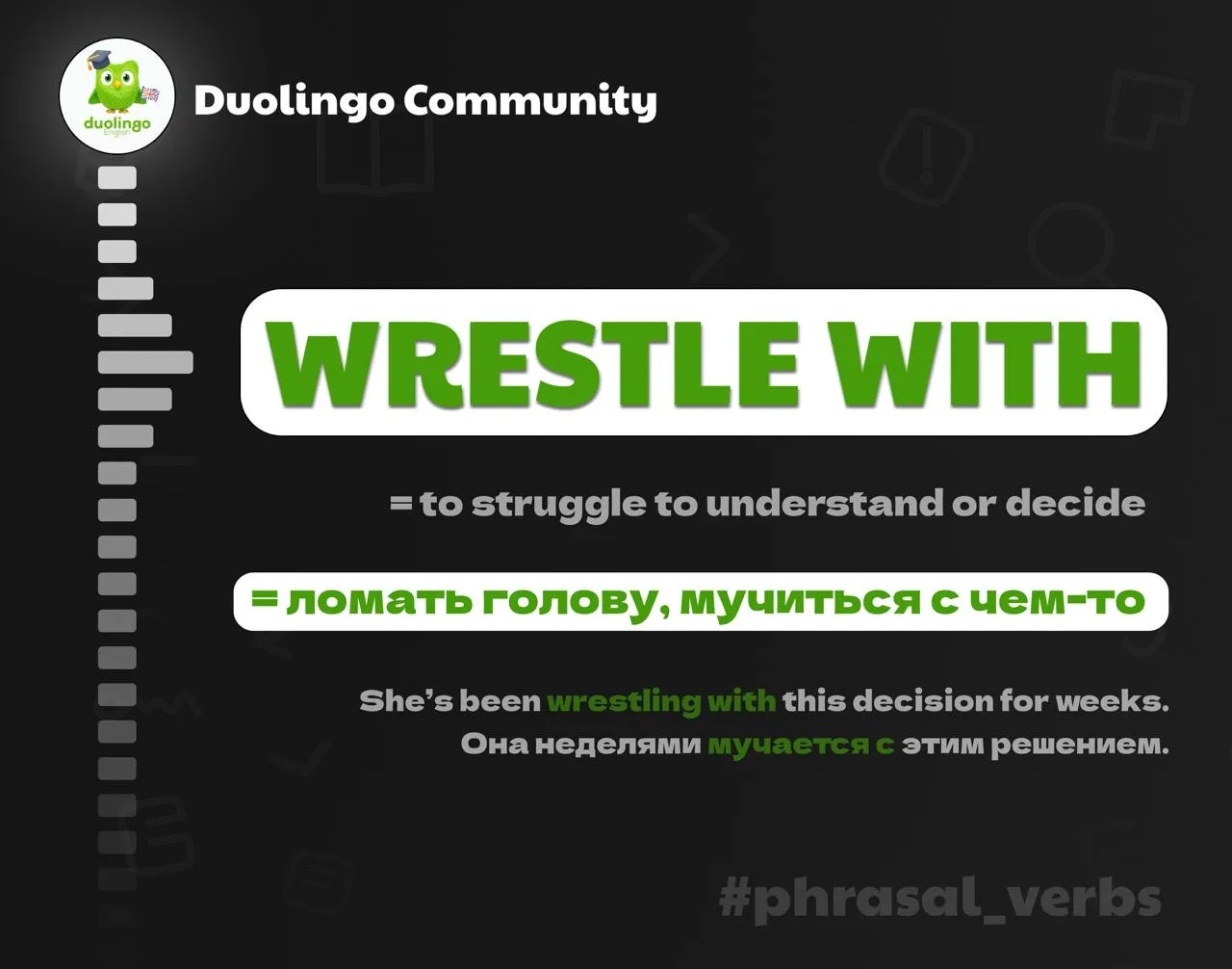 Образ взят из борьбы — как если бы вы физически сражались с невидимым противником: сомнениями, этическим выбором или сложной задачей.