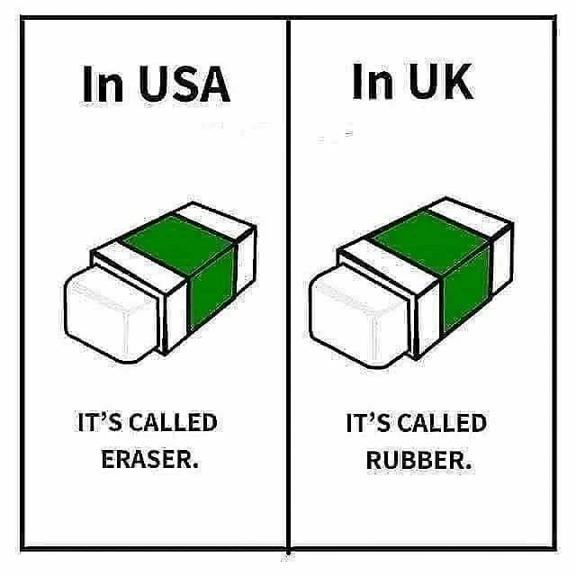 В США это eraser (ластик), а в Великобритании — rubber. Кажется, мелочь?