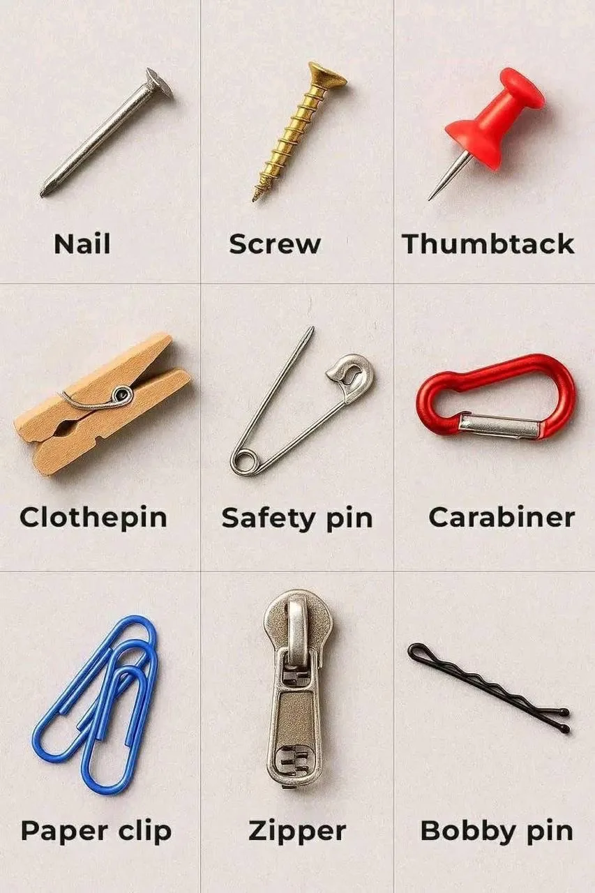 Знать эти слова полезнее, чем кажется. «Приколи это кнопкой» (pin it with a thumbtack) или «закрепи карабином» (fasten with a carabiner) — это та лексика, которая выручает в быту, походе или офисе.