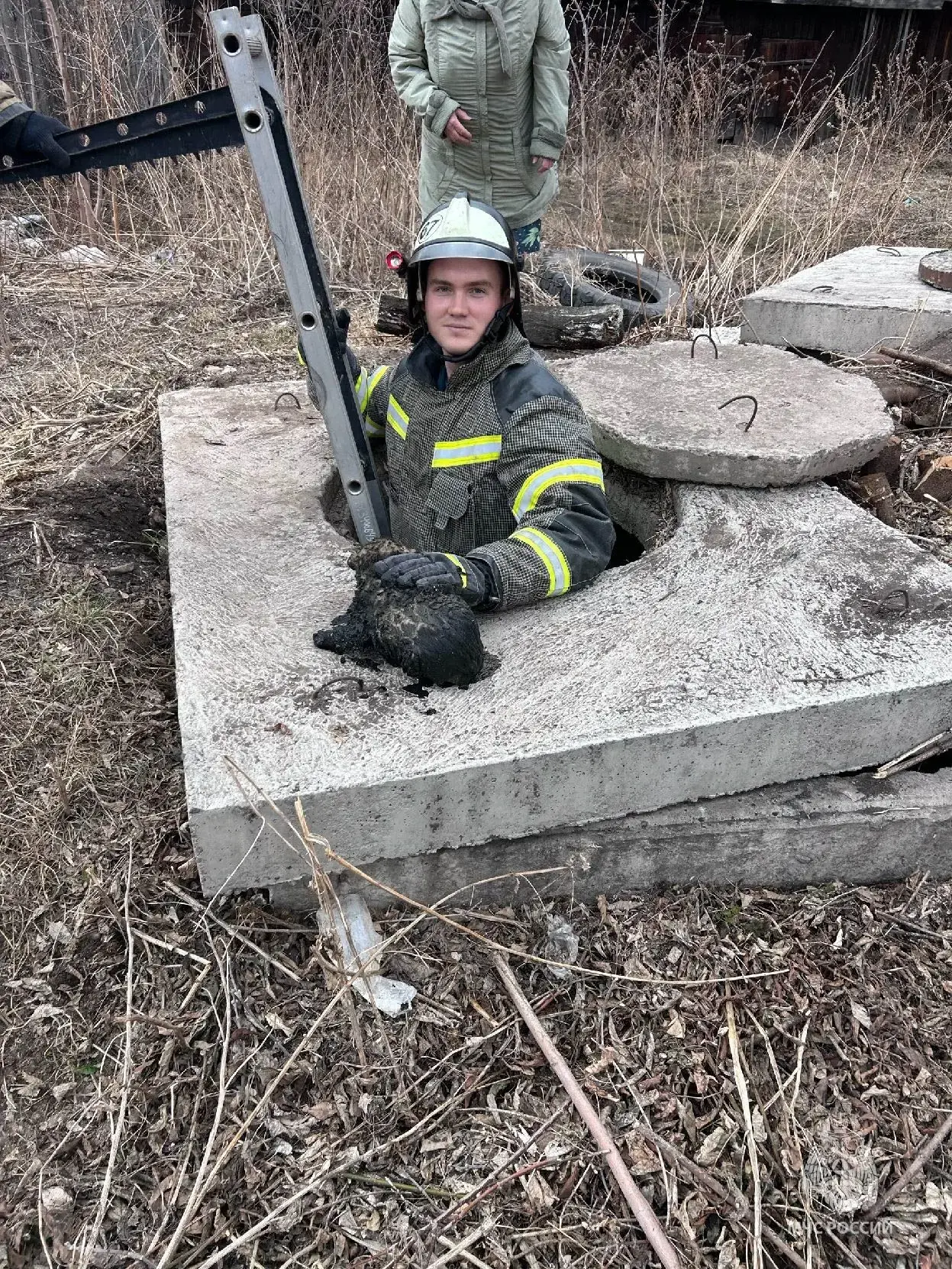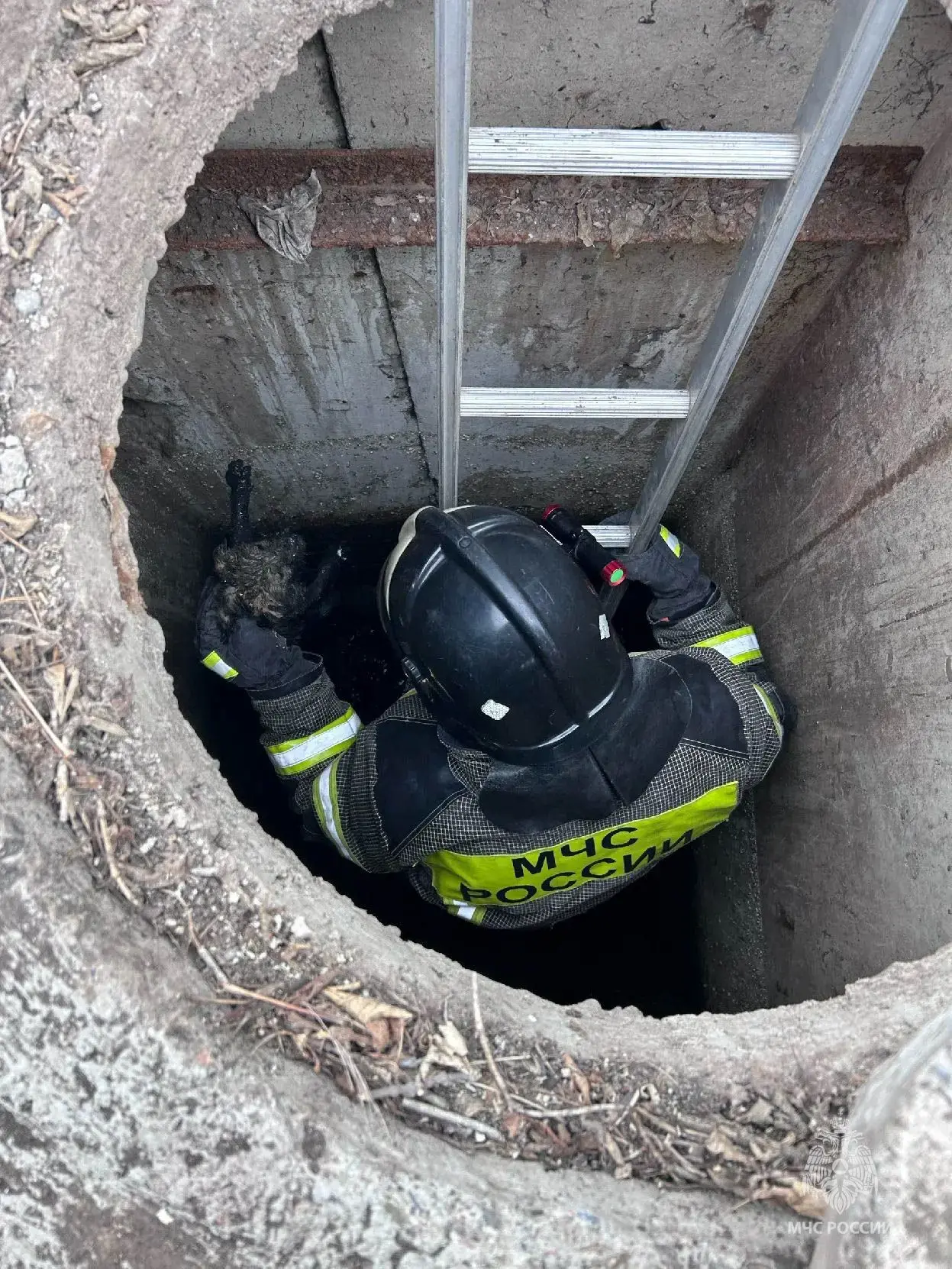 Он упал на глубину 5 метров и жалобно скулил. Хозяйка не смогла сама вытащить собачку и вызвала спасателей. Сотрудники МЧС достали напуганного питомца.