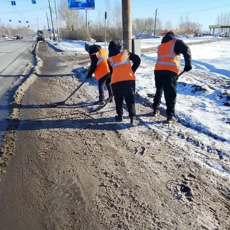 В городе увеличили группу рабочих ручного труда до 213 человек, им помогают 80 единиц техники. Там, где не проходят спецмашины, лёд скалывают вручную.