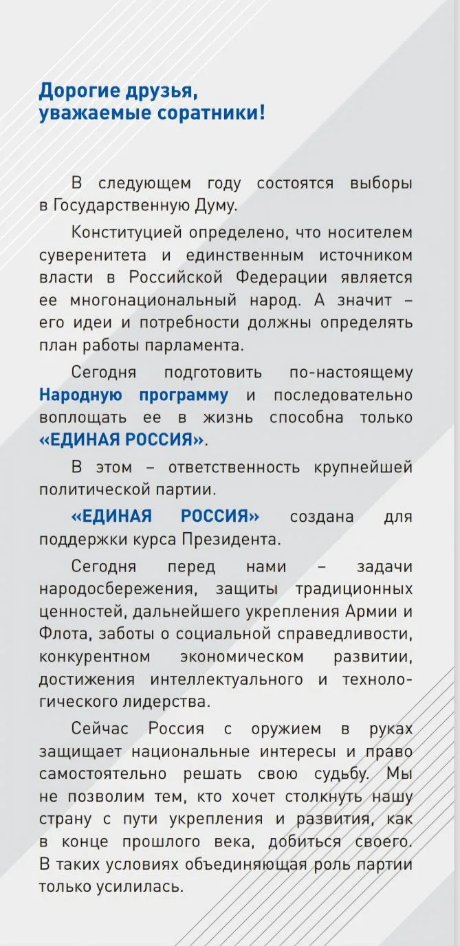 Мы обязаны победить: Единая Россия обратилась к членам партии, её сторонникам и согражданам в преддверии выборов в Госдуму