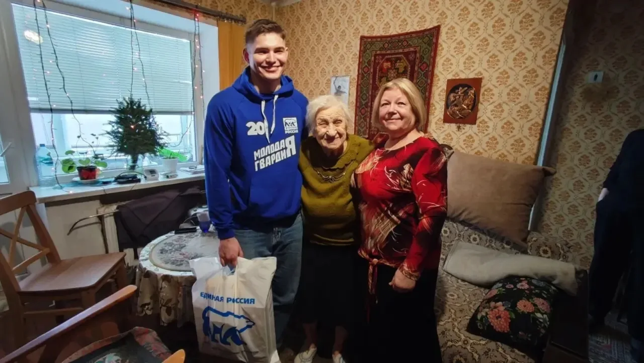 Заместитель секретаря Волгоградского регионального отделения «Единой России», председатель Волгоградской городской Думы Владлен Колесников и депутат по Краснооктябрьскому району Руслан Морозов вместе с активистами «Молодой Гвардии» навестили ветерана Великой Отечественной войны Александру Семеновну Машкову.