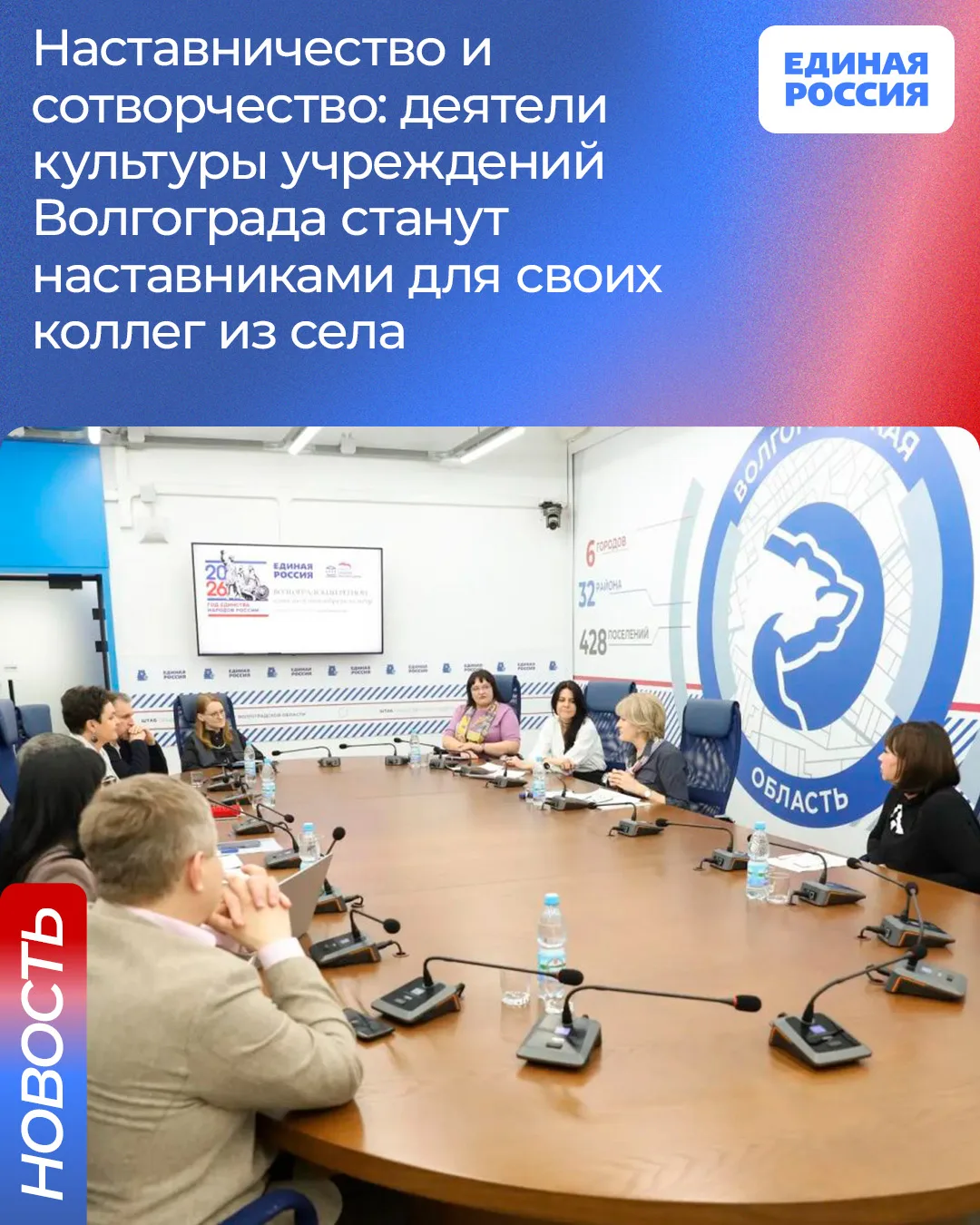В рамках партийного проекта «Единой России» «Культура малой Родины» стартует новый формат работы: каждый член Регионального общественного совета станет наставником для учреждений культуры одного или нескольких районов Волгоградской области.