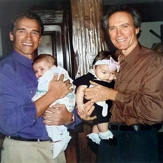 Арнольд Шварценеггер и Клинт Иствуд с детьми в 1993 году