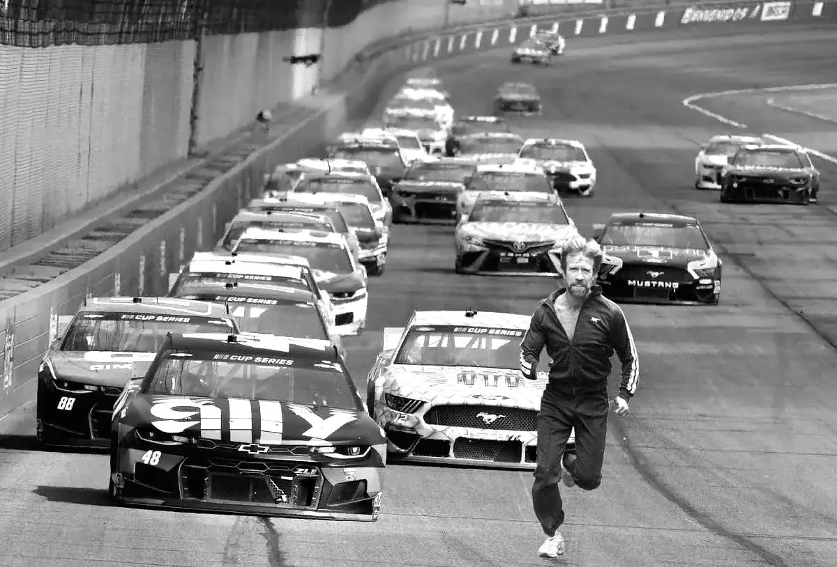 Чак Норрис выиграл гонку NASCAR, просто пробежав.😃😉