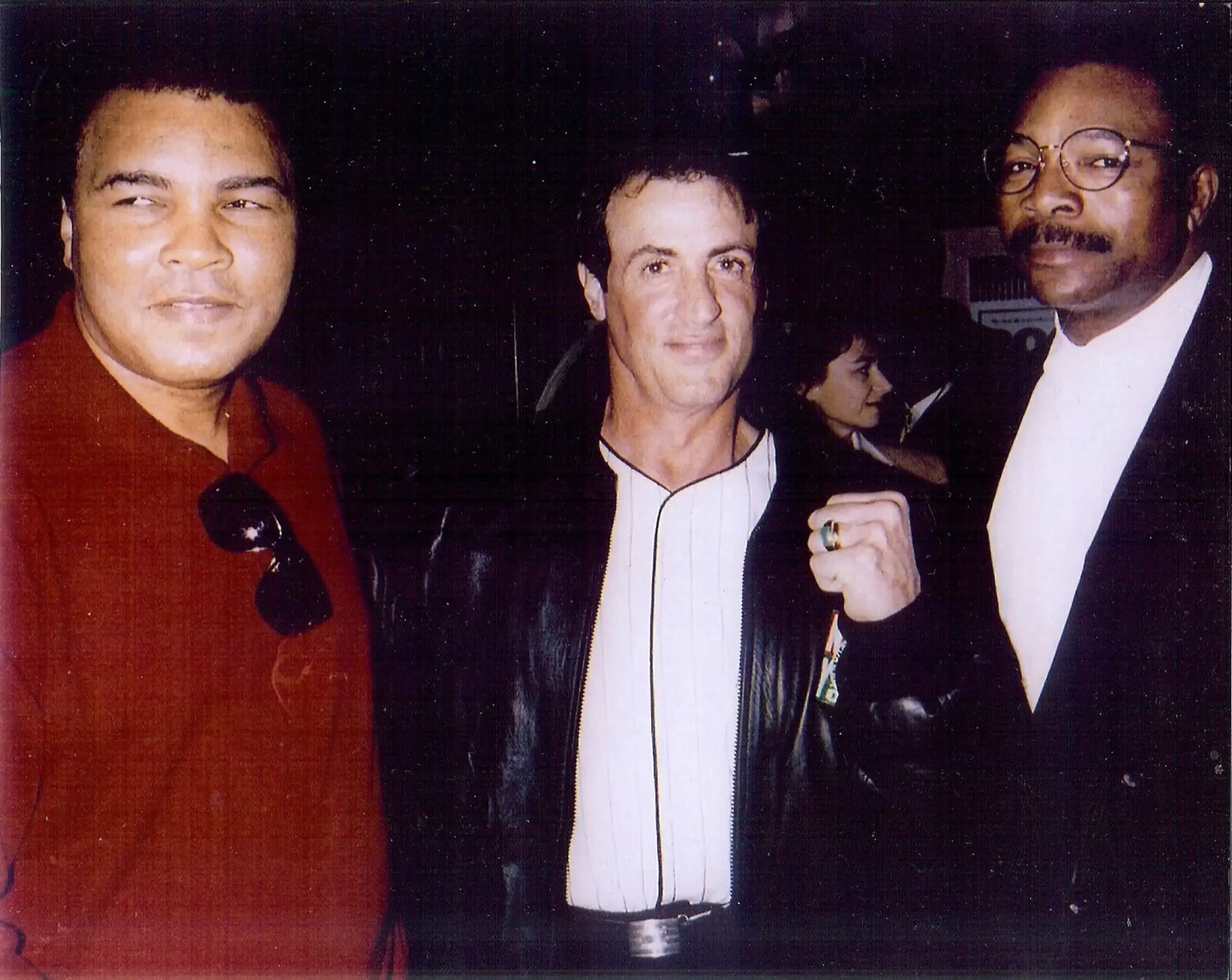 Мухаммед Али, сам Рокки Сильвестр Сталлоне и Карл Уэзерс на вечеринке по случаю 20-летия фильма «Рокки» в 1996 году.
